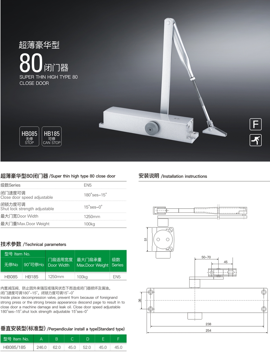 Ultra-thin Deluxe 80 Series Door Closer