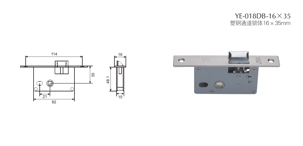 塑鋼通道鎖體16×35mm
